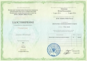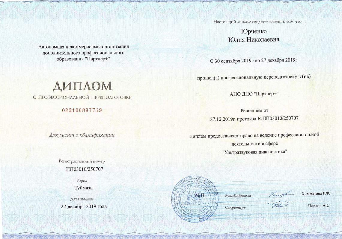 2019 г. – прошла профессиональную переподготовку на базе автономной некоммерческой организации дополнительного профессионального образования «Партнер+» (г. Туймазы) по специальности ультразвуковая диагностика.
